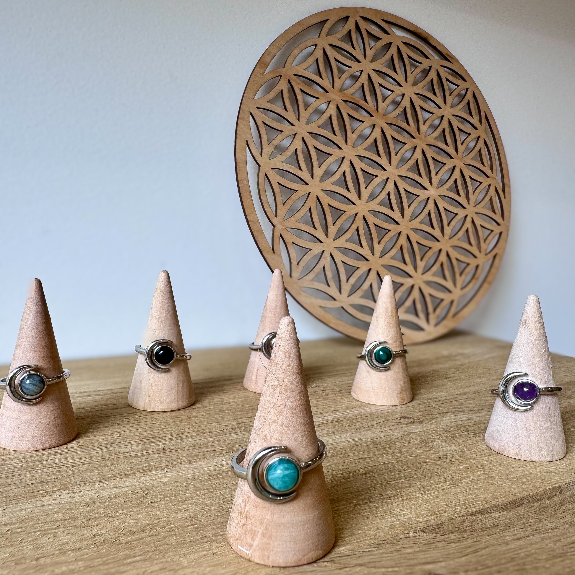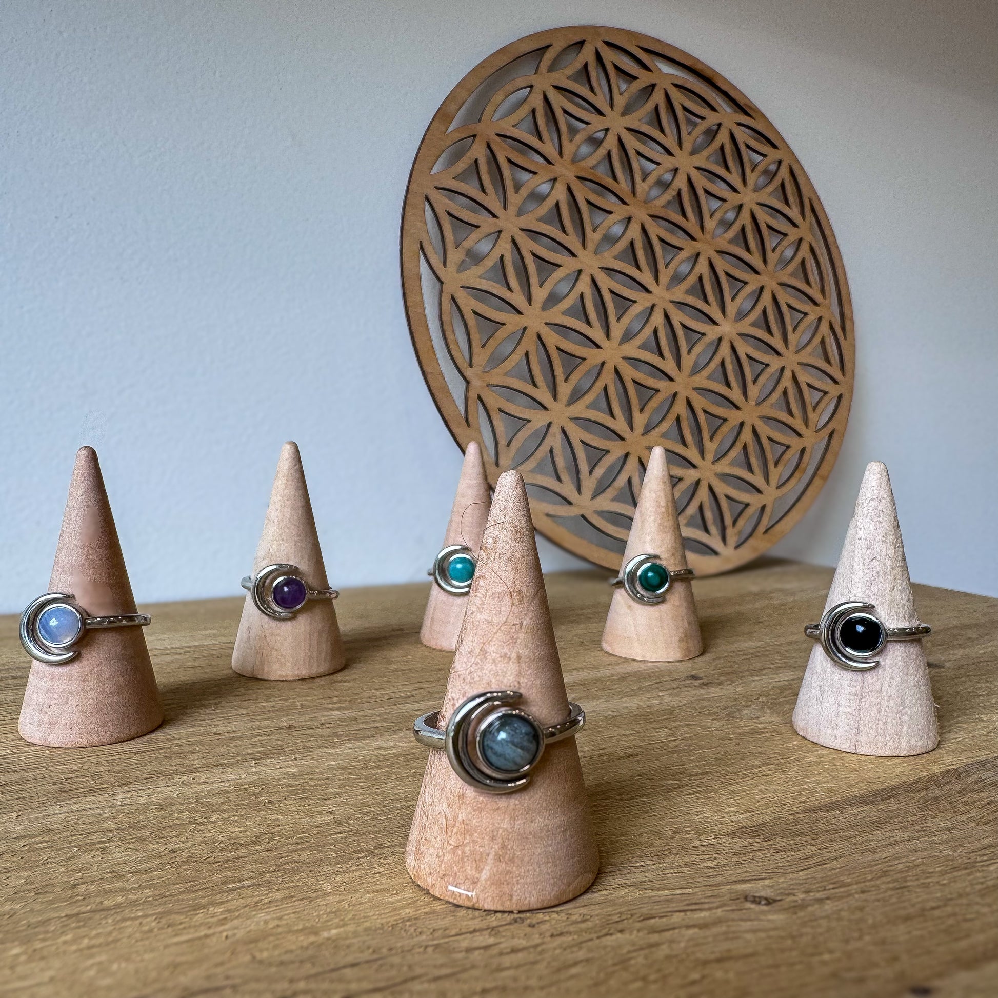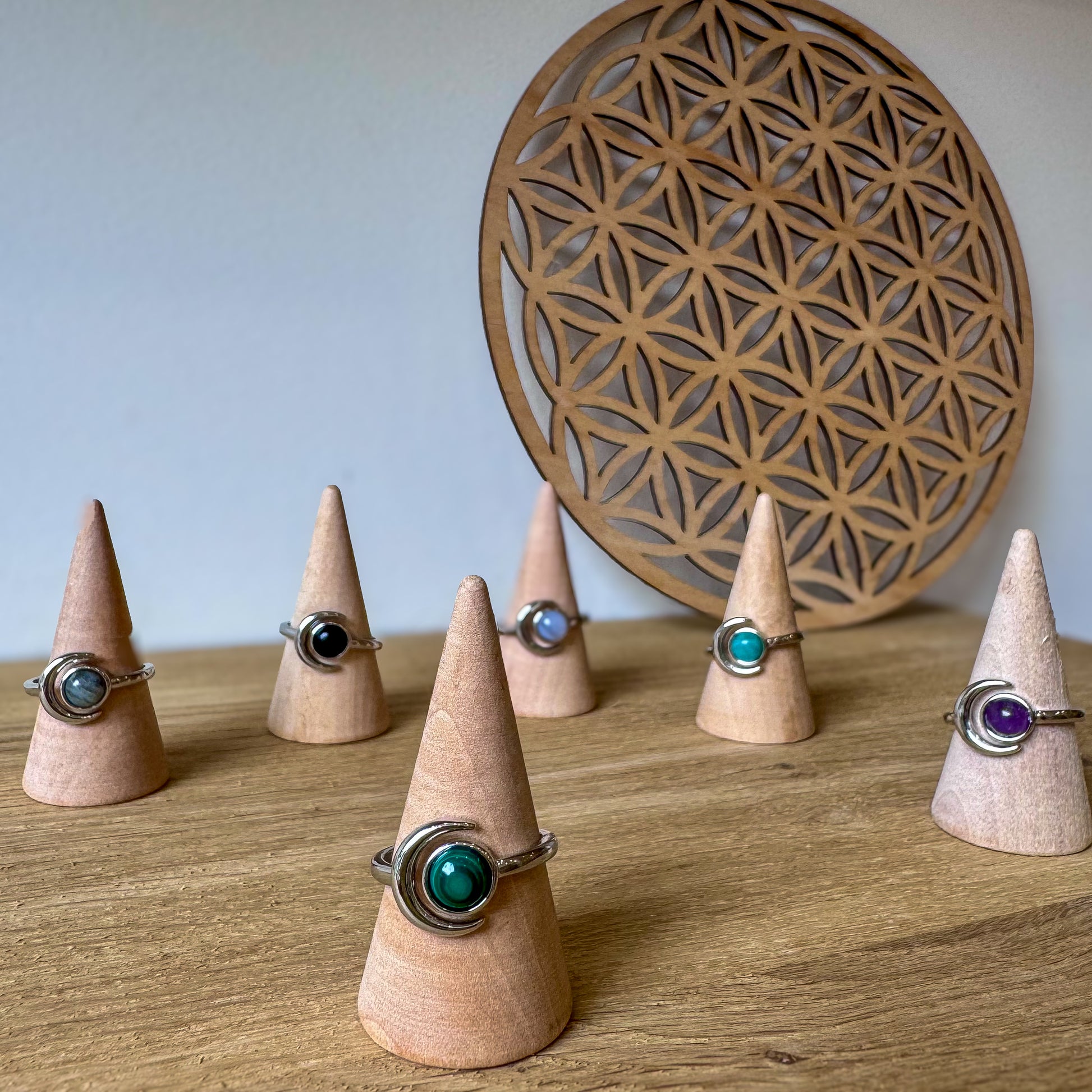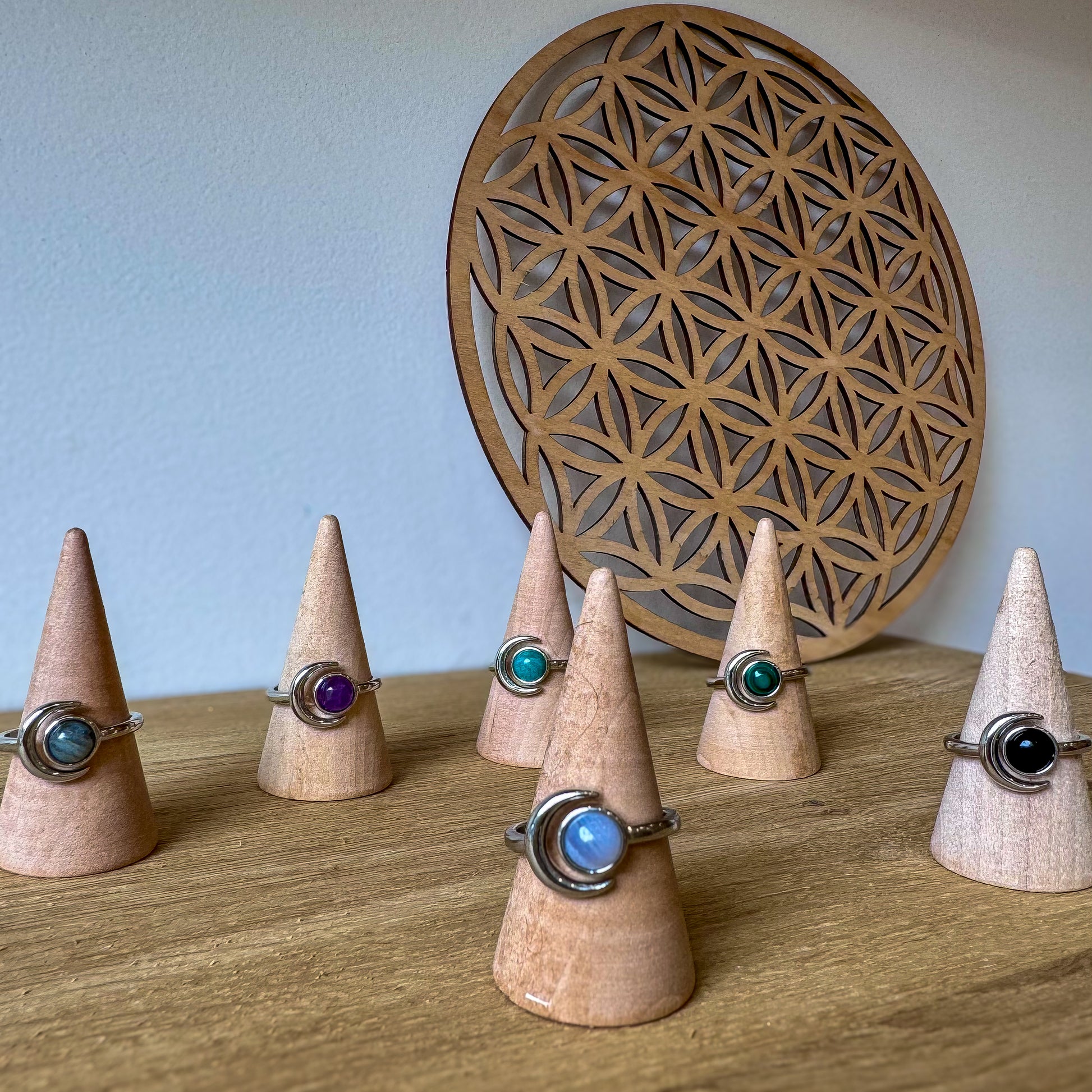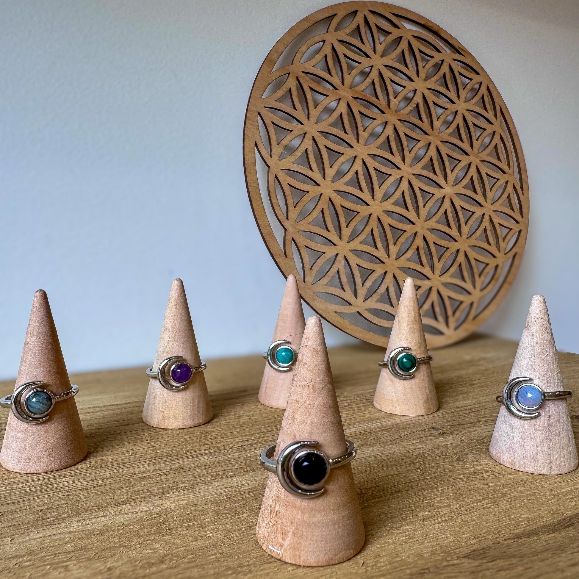 Élégance Céleste : Bagues Lune avec Pierres Naturelles