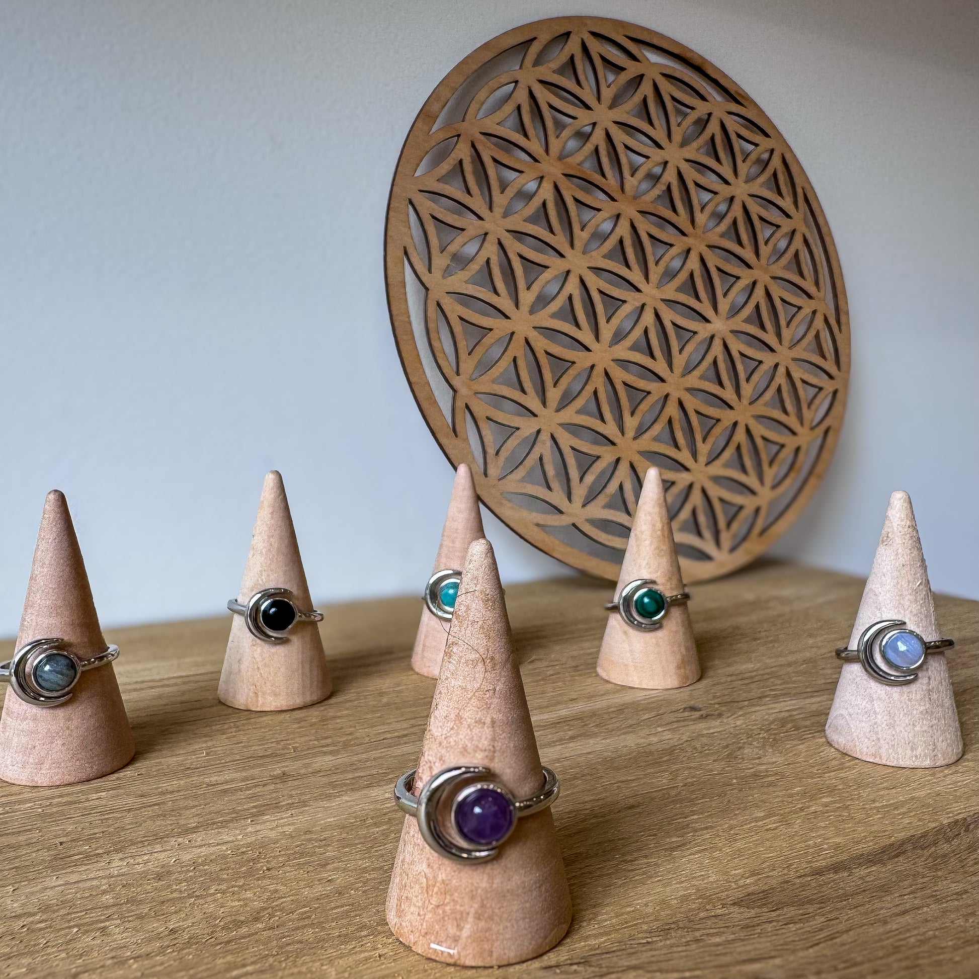 Plongez dans notre collection de bagues lune avec pierres naturelles et trouvez celle qui résonne avec votre énergie personnelle. Chaque pièce est une invitation à embrasser la beauté de la nature et la magie de l'univers.
