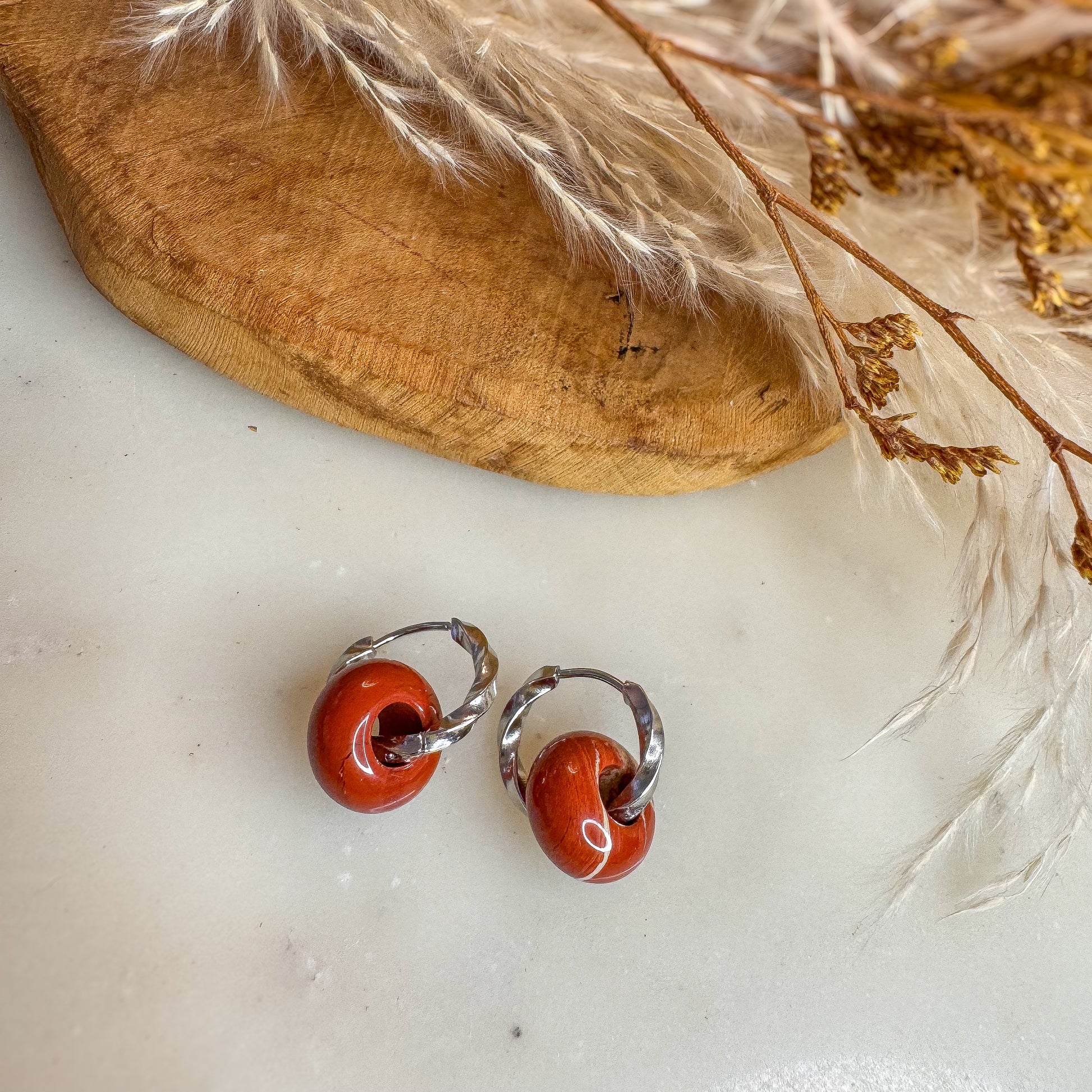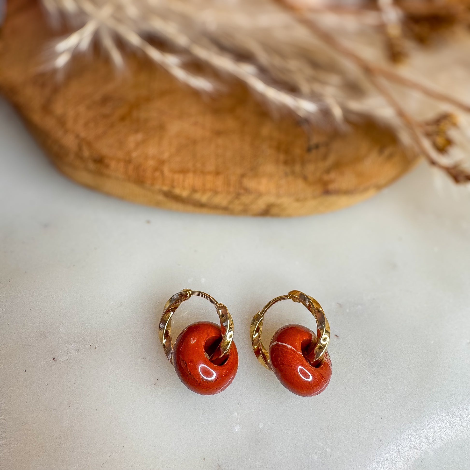 - Incarnez la grâce avec ces boucles d'oreilles créole en Jaspe rouge.