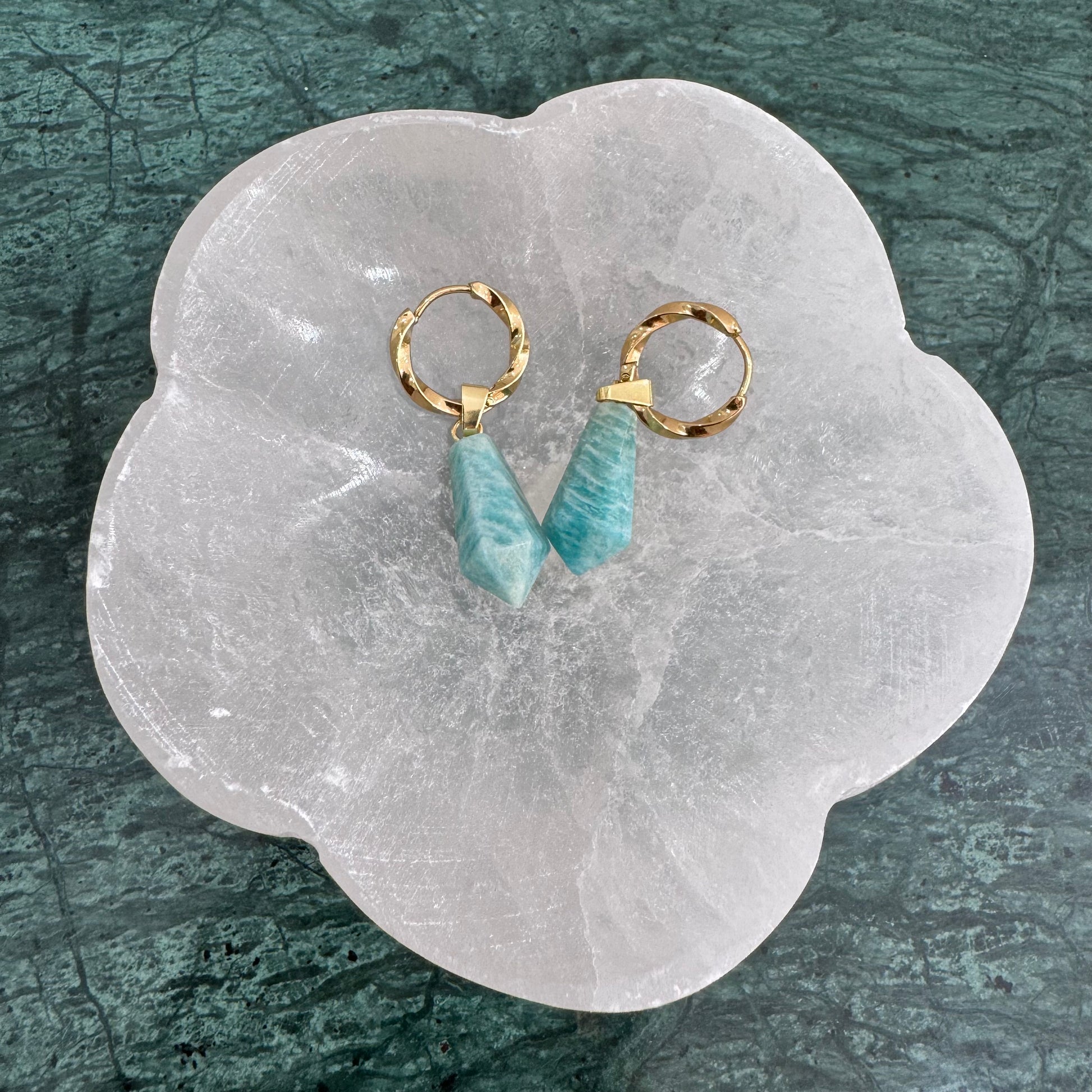 - Incarnez la grâce avec ces boucles d'oreilles créole en Amazonite.