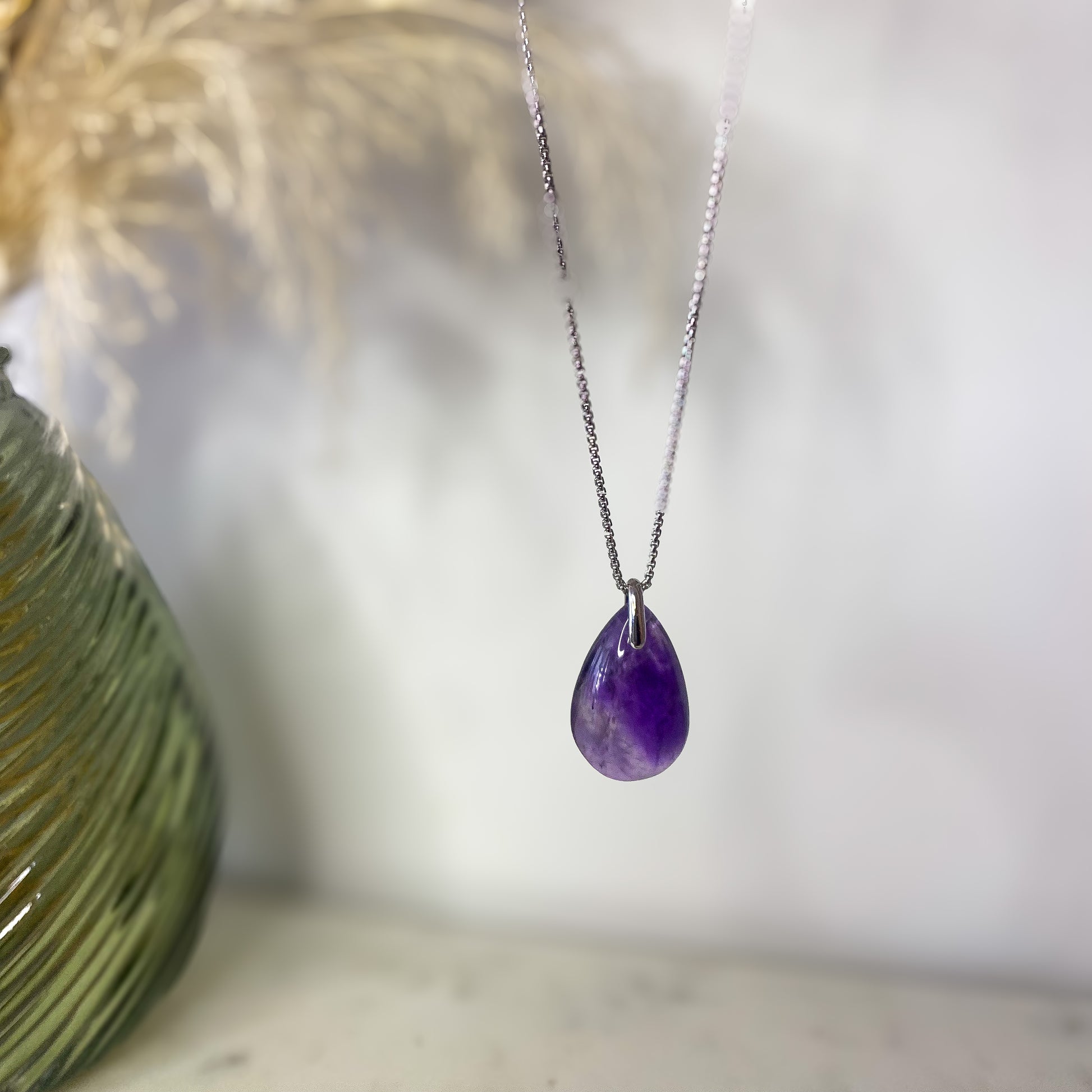 - Pendentif en forme de goutte: Le pendentif Amethyste, 25 mm en forme de goutte est la pièce maîtresse de ce sautoir, créant un effet chic et délicat.