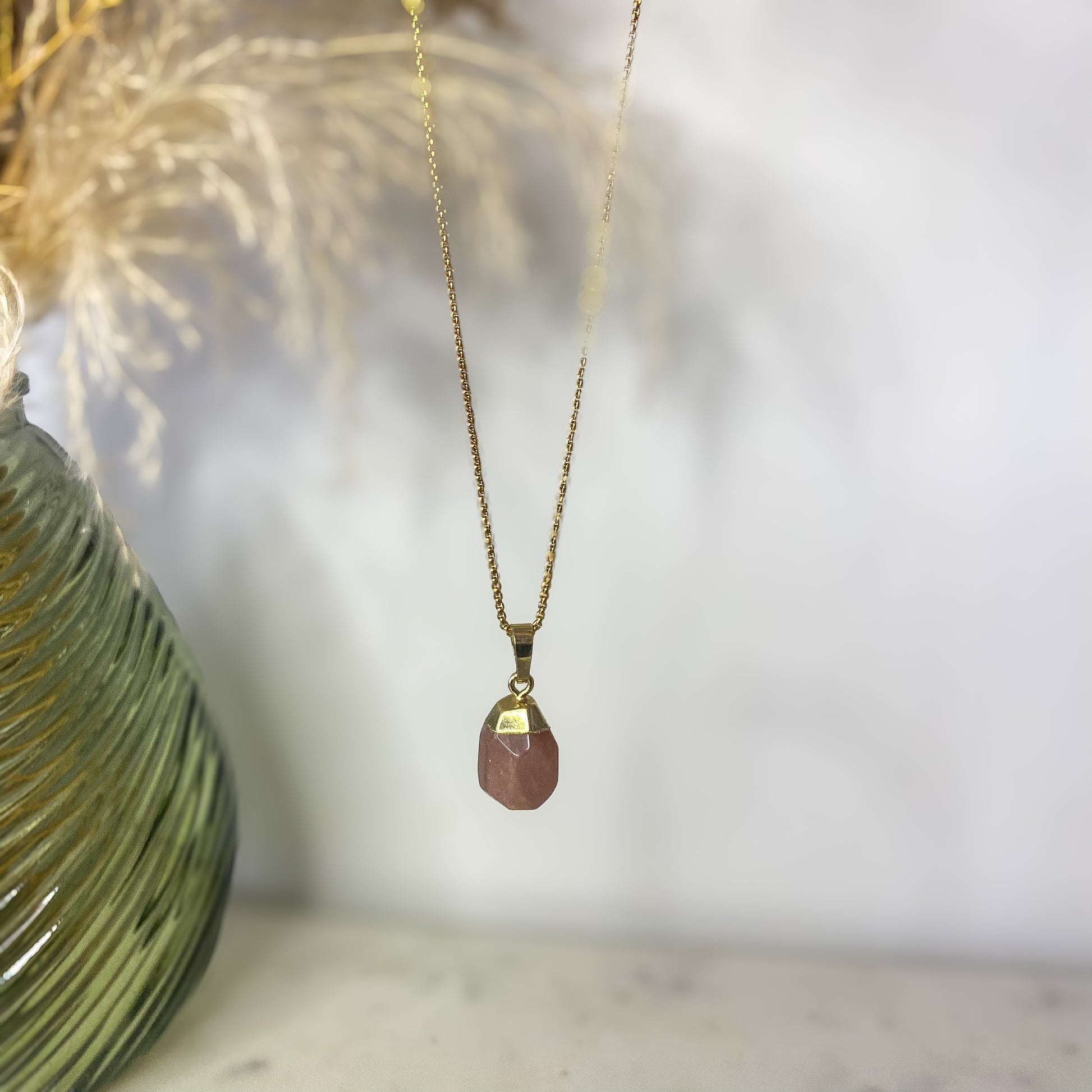 - Pendentif en forme de goutte: Le pendentif Pierre de soleil, 20mm est la pièce maîtresse de ce sautoir, créant un effet chic et délicat.