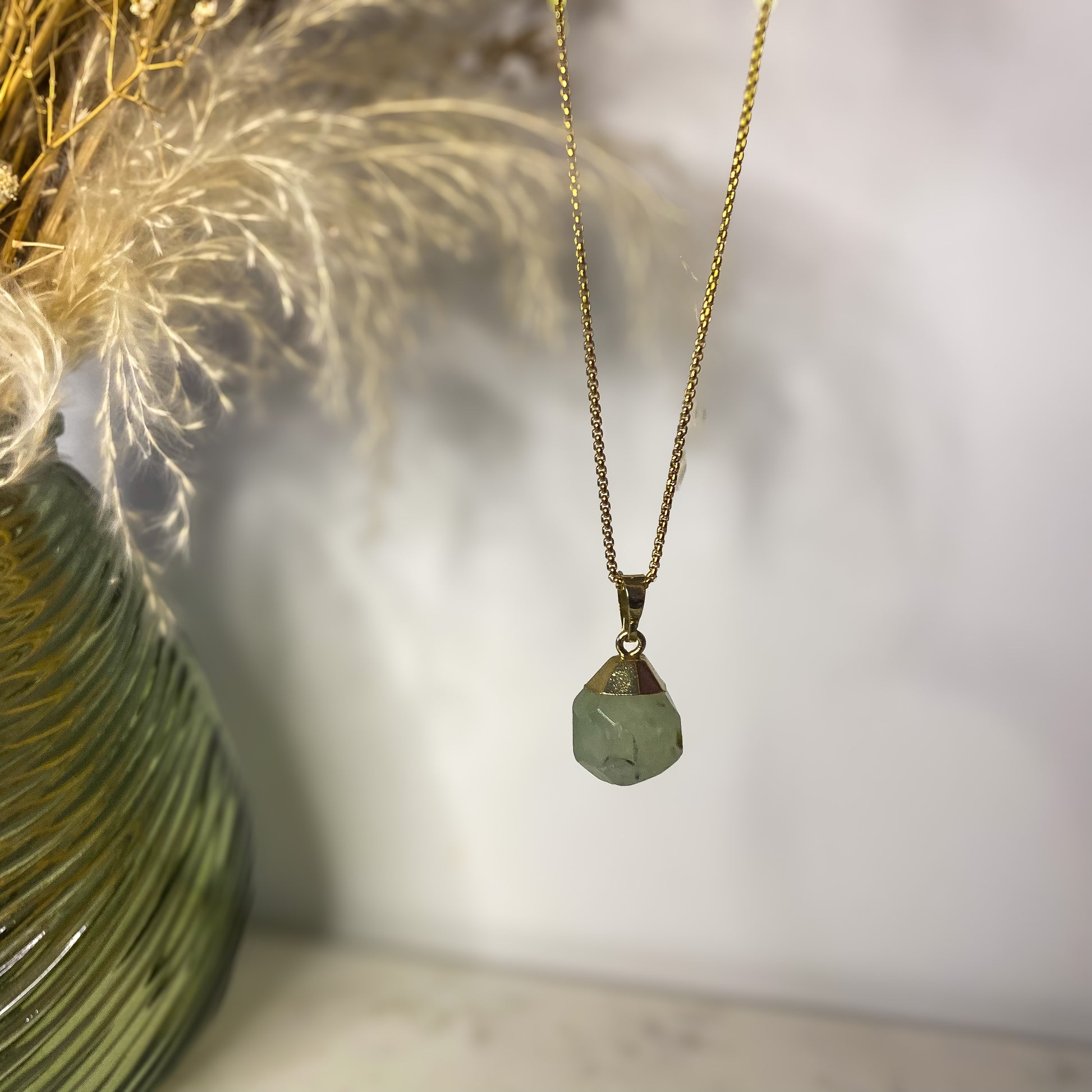 - Pendentif en forme de goutte: Le pendentif Phrénite, 20mm est la pièce maîtresse de ce sautoir, créant un effet chic et délicat.