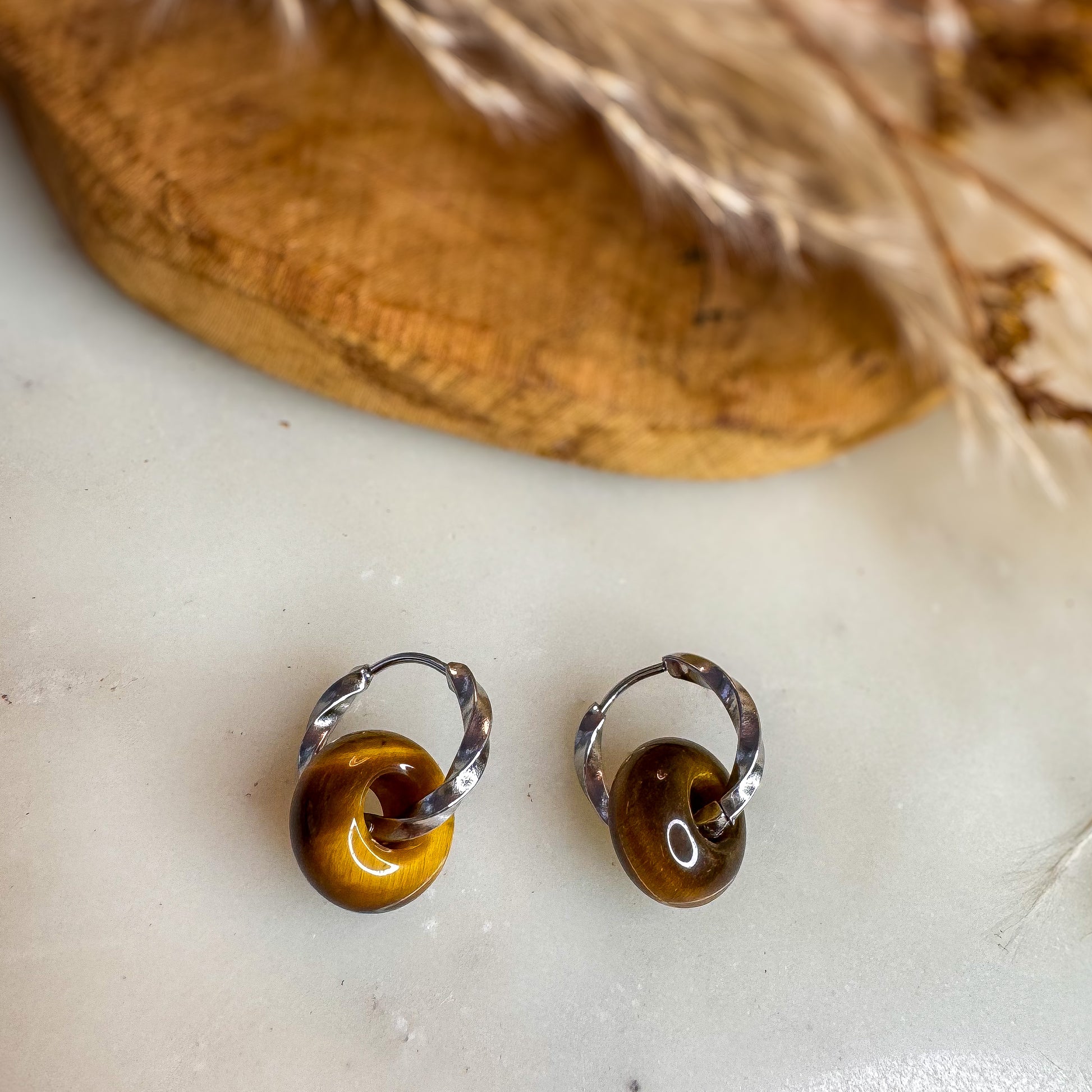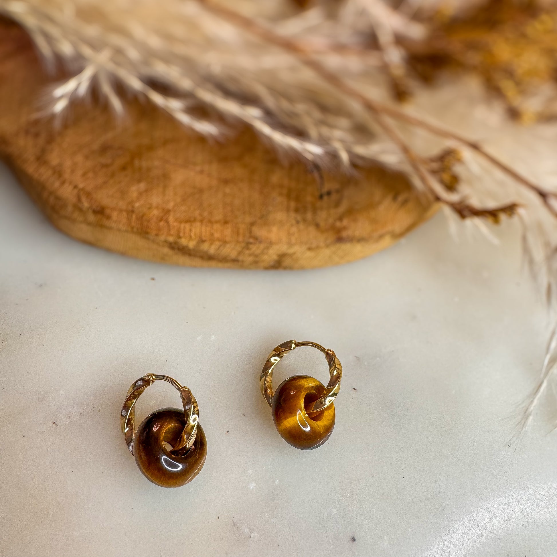 - Incarnez la grâce avec ces boucles d'oreilles créole en Oeil de tigre.