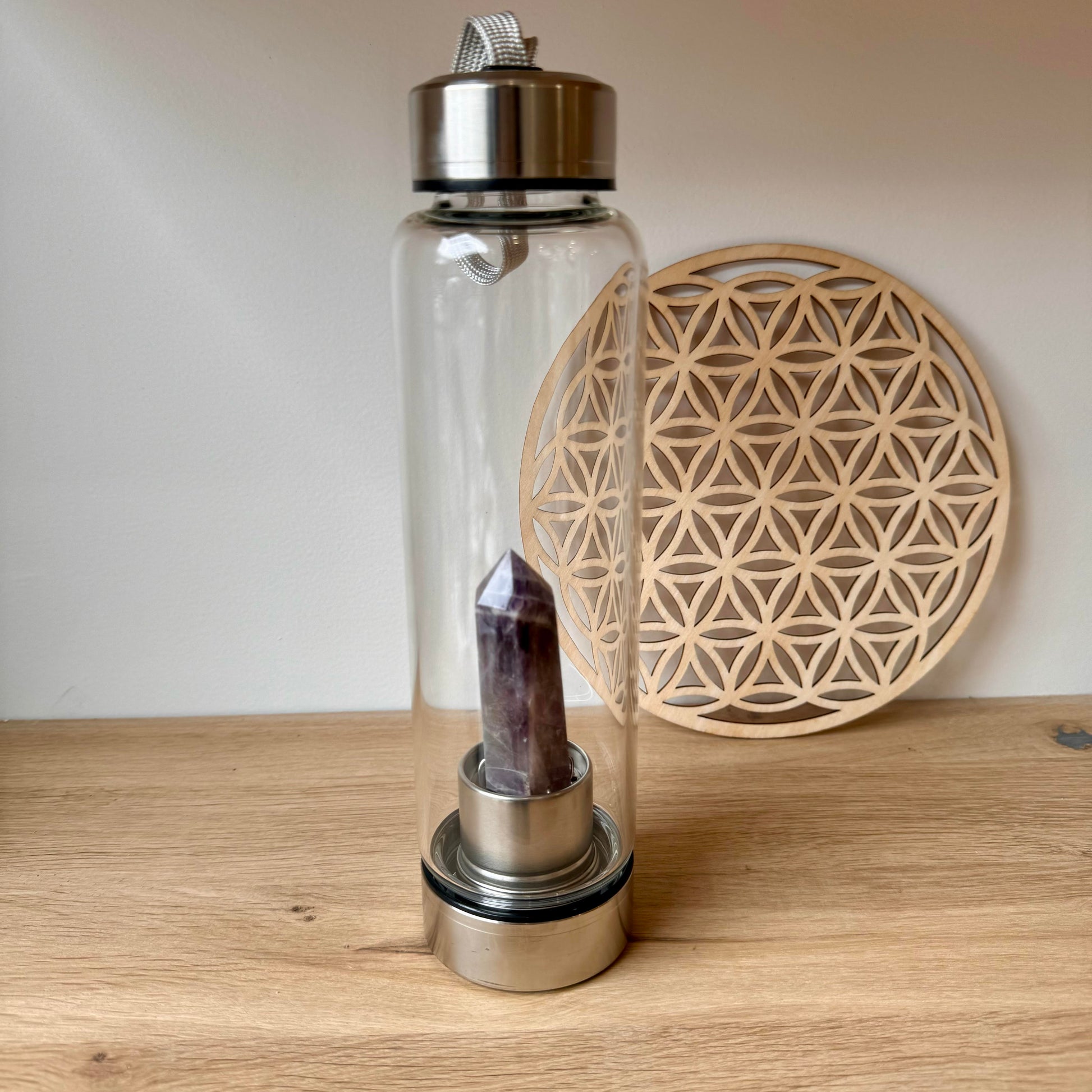 Découvrez nos bouteilles Tadasana contenant des pierres naturelles. Grace à ces gourdes, les vertus des pierres feront encore plus partie de votre quotidien. Les minéraux sont intégrés au contenant et ont un contact direct avec le fluide.